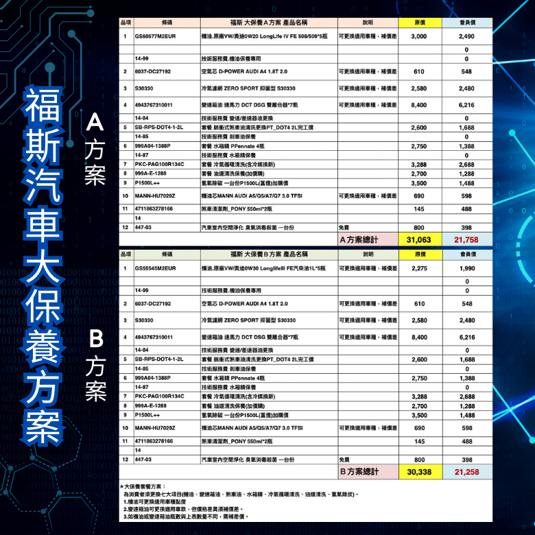 【VIP方案】進口車系-大保養-福斯汽車A方案。(消費積點:40)