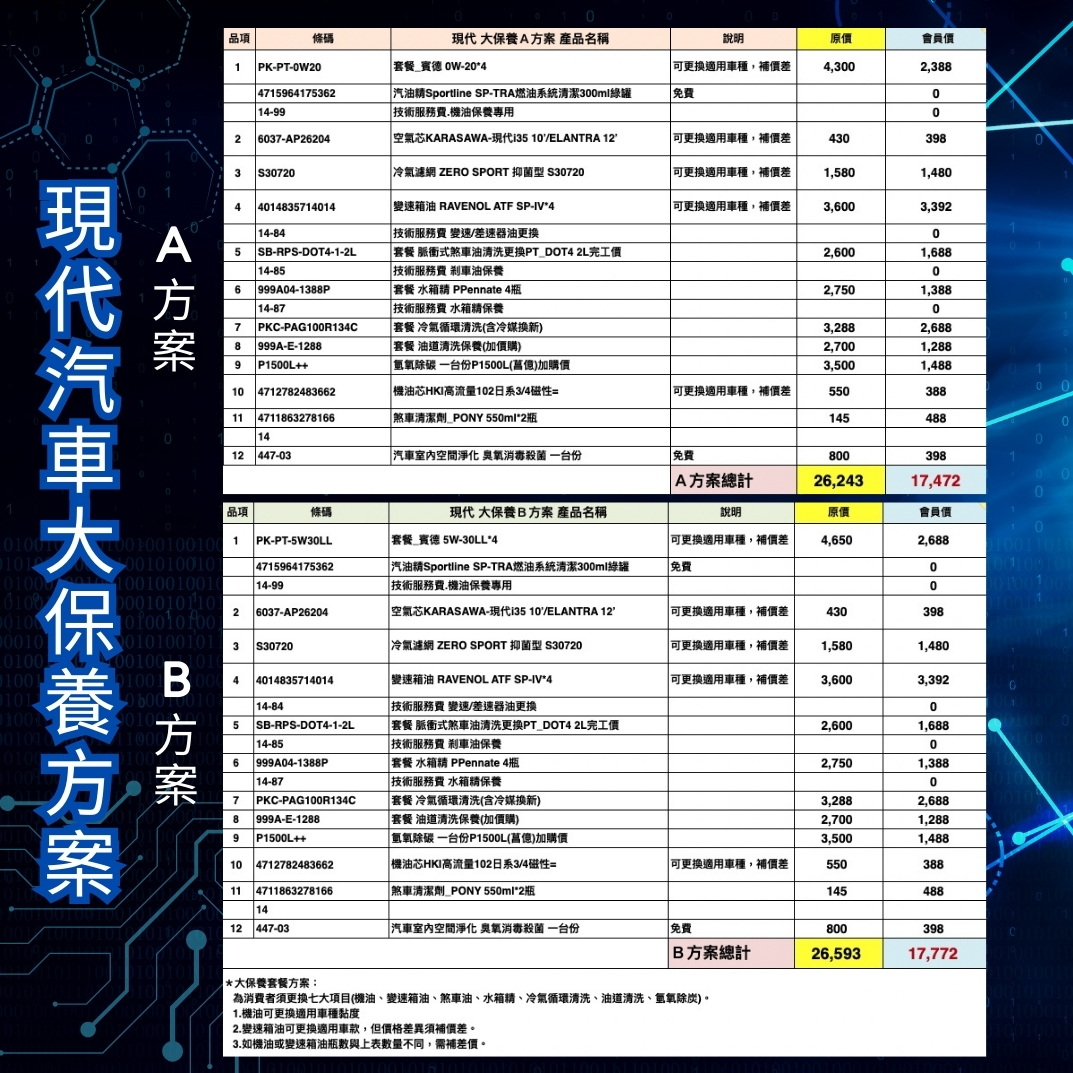 【VIP方案】國產車系-大保養-現代汽車B方案。(消費積點:40)