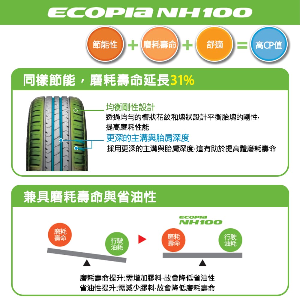 【BRIDGESTONE 普利司通】ECOPIA NH100 神省胎 用更少跑更遠 195/60/15(NH100)_四入組