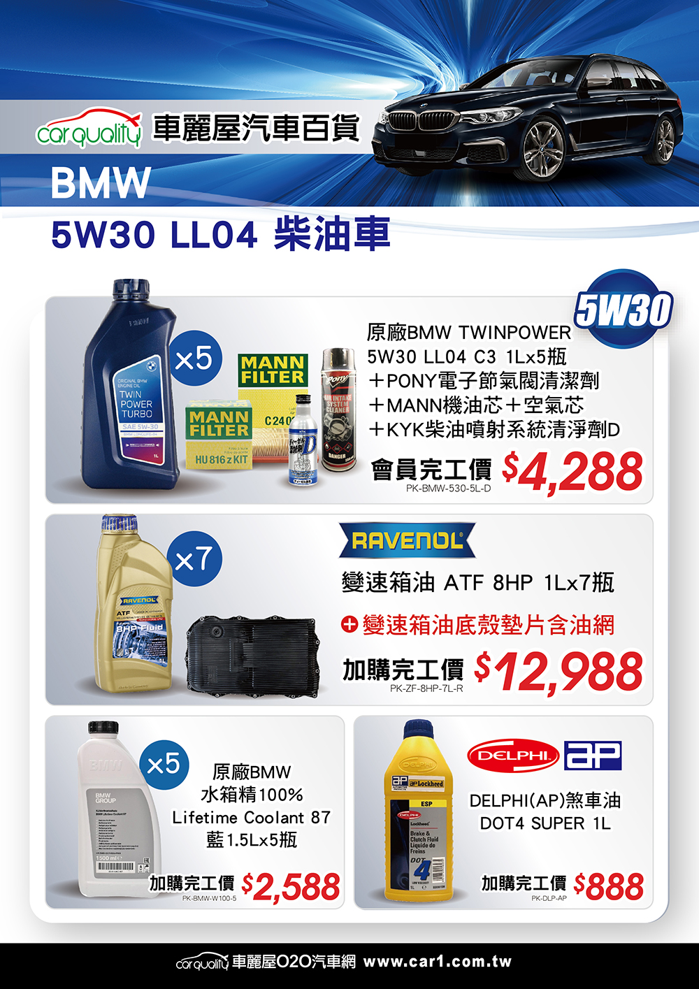 BMW【原廠寶馬 BMW】機油套餐 TWINPOWER 5W30 LL04 C3 5L完工價 (F3