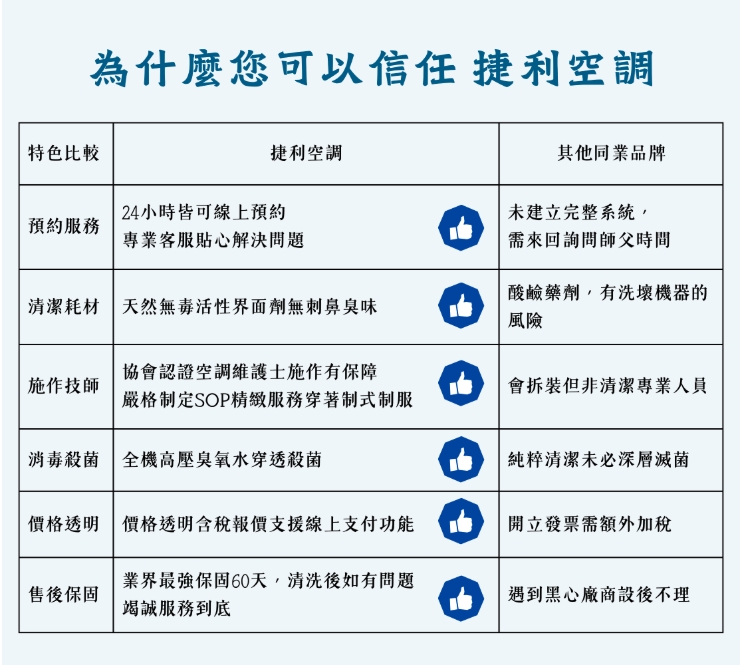 捷利冷氣清洗服務6大特色